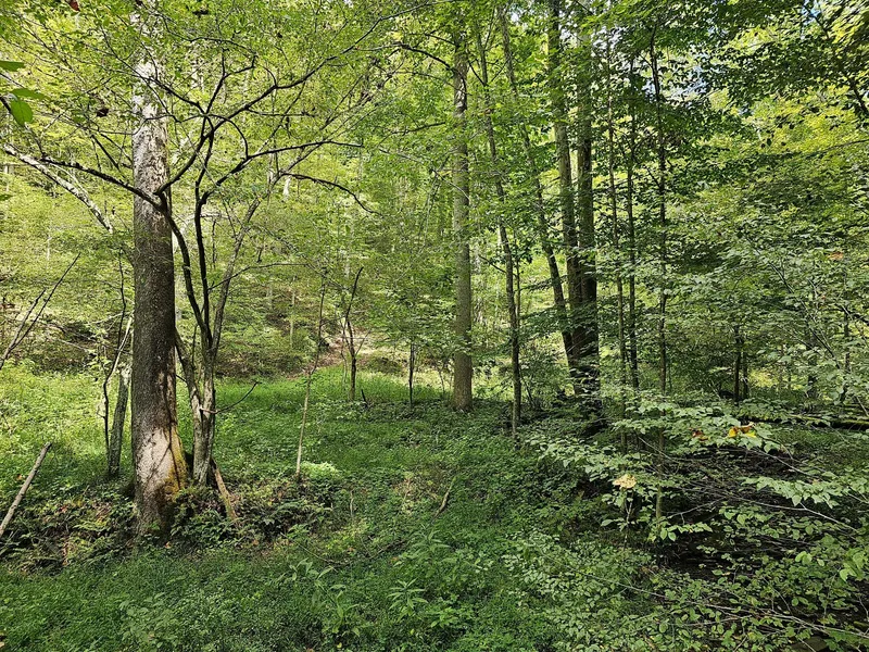 About 90% of the land is wooded. The woods are mainly red oak, tulip poplar, hickory and some white oak. This property was timbered about 10 years ago, but there are still plenty of nice woods on it now. The timber rights DO go with the property, which is not always the case in West Virginia. The property is mainly sloping to hilly, but there are a couple of nice flats on the property that would make a nice cabin site or possible building site.