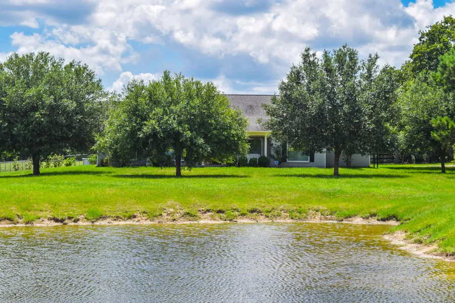 PRICED TO SELL QUICK! Come SPLASH in the POOL or PARTY in the HOT TUB or ride your HORSE or picnic in the neighborhood park! Enjoy country living with the convenience of having close proximity to shopping, schools and churches. This five acre tract is mostly open with woods in the back and gorgeous oaks near the home. Enter the property and wind down the drive past your own pond and find this 1-story brick home with attached garage and lots of upgraded living space. The architecture of this home is sensational with curved doorways and arches, lots of windows giving the feeling of bringing the outside in, very light & bright and a great open living area with 10' ceilings and split bedroom floor plan. Formal dining and extra den/office/gym room plus large laundry room with deep sink and extra cabinets. The kitchen is spacious with beautiful cabinets and lots of counter space, updated with ...