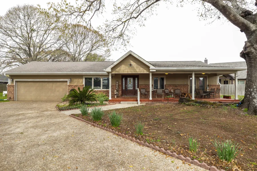 Emerald Bay cozy cottage, Ranch style! 2 bedroom, 2 bath, 2.5 garage, located in a quiet cul de sac, and access to Lake Palestine. Emerald Bay Country Club has all the amenities! This seller loves their home, they love the neighborhood, location, clubhouse, playground, pool and the beautiful front porch. They love the large wrap around yard, the extended 2 car garage, the large open living and dining room, and the large master bedroom with access to the porch are just icing on the cake. Since the seller has owned - 2019, they have updated the grey paint in the living room, dining room, hallway and bathroom. Updated Kitchen with lighter two tone paint color scheme, Painted the guest bedroom with an updated fun green stripe to match the comfortable green carpet, Replaced all electrical outlets and light switches in the living room, dining, kitchen, guest bedroom and replaced the dining room light fixture. The seller has also added a vertical French Drain under the home and graded around the home to improve the drainage (2020). Gutters have also been installed with downspouts. They love their home but are being relocated due to work and to be close to their families! This home is loved and is so Happy!