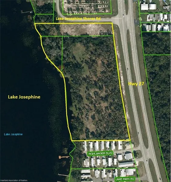 A very unique and desirable property with Hwy 27 frontage and Lake Josephine frontage. Access from Lake Josephine Shores Rd on the north side of the property. 907 ft. on (1249 acre) Lake Josephine. 847 ft. Hwy 27 frontage. Very easy access from Lake Josephine Shore Rd. with crossover on Hwy 27. High and dry with 30+- ft elevation drop from Hwy 27 down to the lake. Beautiful, mostly improved with scattered large trees. Possible residential development or commercial applications. Potable water source near. Mobile home parks joining property on the south side and across Hwy 27. Could be divided into smaller tracts. 3 parcels - currently 2 parcels zoned R1, 1 parcel zoned AU. Public boat ramp very close, walking distance. Very good location between Sebring and Lake Placid. This is a great investment property with huge potential upside. Less than 3 hours Miami, 2 hours or less to Orlando, Tampa, Fort Myers, Naples. Seller says make a offer!