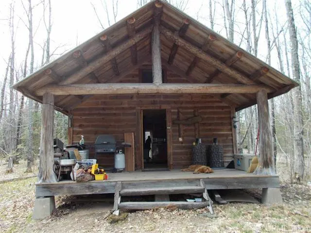 Huron Mountain Acreage with craftsman cabin in the north woods of Marquette County. This is a very hard to find 160 acres that is private and remote in the Huron Mountain foothills. The post and beam cabin is in like new condition built in 2007. It is meticulously had crafted without nails or screws and door hinges are crafted by a blacksmith. Features include wood lap siding, cherry hardwood floors,18" wide interior pine wall boards, cherry barked window framing, propane lights and efficient wood stove, propane cook stove, plumbed for a propane refrigerator, a large covered front porch and metal roof. The outhouse is custom crafted in a similar style. Bathing is in the exterior cedar log sauna that is scribed to fit without chinking. I t has a cedar shake roof and a Nippa wood sauna stove. There is even a small guest cabin. This exceptional cabin is off the grid without water, septic or electric but could be retrofitted accordingly. Just 15miles from Marquette but deep in the mountains, this cabin and acreage are nearly as remote as you can be yet still access town when needed. This one of a kind property offers mountain top views of Lake Superior with rolling hardwood hills loaded with timber and enough feeder streams and valleys to funnel the wildlife throughout the area. And, this area is noted for whitetail deer and bear along with nearly every other mammal found in the U.P. The timber is hard maple and oak with mixed soft maple yellow birch and other varieties of upland hardwoods. The rolling timbered hills will beckon the hiker or snowshoe enthusiast or the hunter who longs for the days when you can hunt all day and not view another hunter. Take a hike to the top of one of the scenic overlooks to relax and take in the views of the lake and mountain tops in the distance. Adjoining this tract to the East is an entire section of State of Michigan land which offers even more recreation. There are several trout streams near the tract including the Nash, Little Garlic, Bismark and Harlow so you will never run out of running water or places to seek a brook trout. There are many people in today's world who yearn for nature to soothe their souls. If you are one of these people who crave nature and appreciated a comfortable cabin in the north woods this could be the haven your seeking.