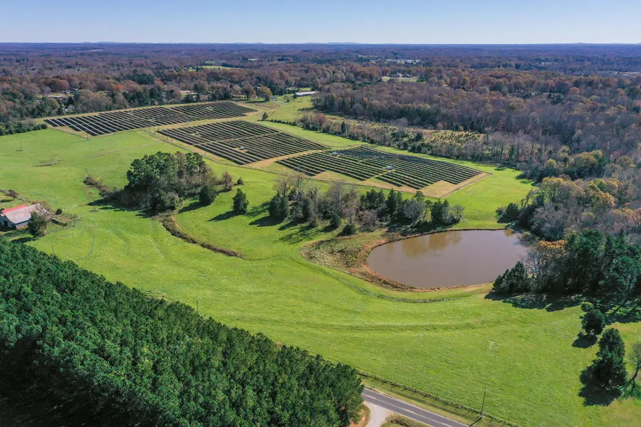 Simply stunning parcel with custom-built brick home nestled off the road on 113+ acres in rural setting. This beautiful home overlooks a peaceful pond for fishing and gently rolling pastures with a gorgeous, wooded backdrop. Step inside to receive a vaulted ceiling, fireplace, and hardwoods greeting you at the front door. Spacious kitchen featuring granite counters, pantry, and stainless-steel appliances. Primary suite offers large walk-in closet and vanity with walk-in shower and jetted tub. Storage, storage, storage in this unfinished basement (12'6" high ceiling) with convenient utility door. Large metal storage building (46x28) with concrete floor. Additional barns and buildings on the property. 39 acres of solar panels with income producing lease. Great opportunity for horses, cattle, vineyard, outdoor venue, etc. This property has it all!
