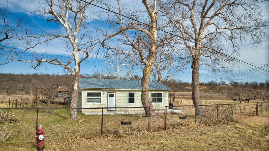 Nice three bedroom one bath home on FIVE acres, located right on the edge of Mason. Open concept living/dining/kitchen with spacious front porch, central HVAC. Old home directly behind main house has long leaf pine-possible tear down for materials. Several outbuildings, sheds, and detached carport. Property has a wet weather draw, dirt tank, and the land has a nice rise to the back, possibly allowing for division. Home is not in the flood plain. Home has city utilities, property has two water wells, one of which functions. Residence is supplied city utilities, sewer and water. There are two wells on the property, one which is working.