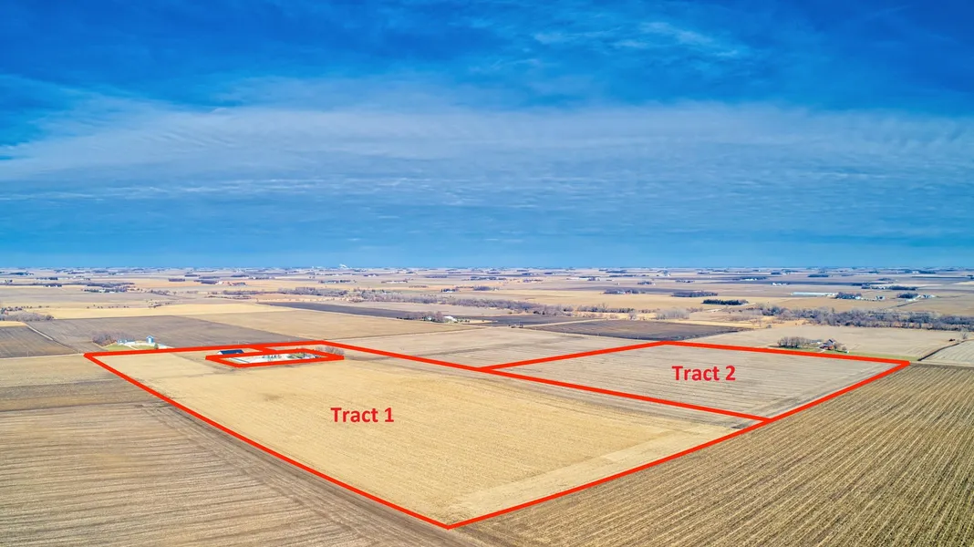 Tracts 1 & 2 combined include 111.9 cropland acres with a corn base of 83.92 acres and PLC Yield of 162 bu. The soybean base is 27.98 acres with a PLC Yield of 55 bu.