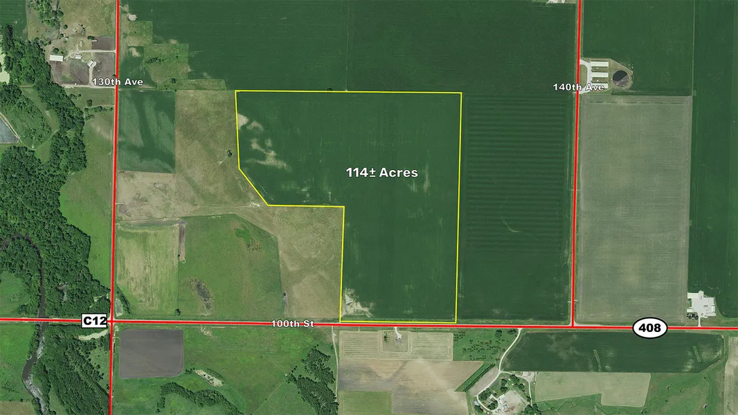 An excellent farm located south of Algona, Iowa. The farm consists of 114.15 gross acres and 112.36 tillable acres. The farm is leased for 2020 at $290 per tillable acre. Real estate taxes are $2,730 annually or $23.92 per acre. The farm has quality soils with a CSR2 of 78.20. Closing to take place on or before March 1, 2020, subject to the 2020 lease.