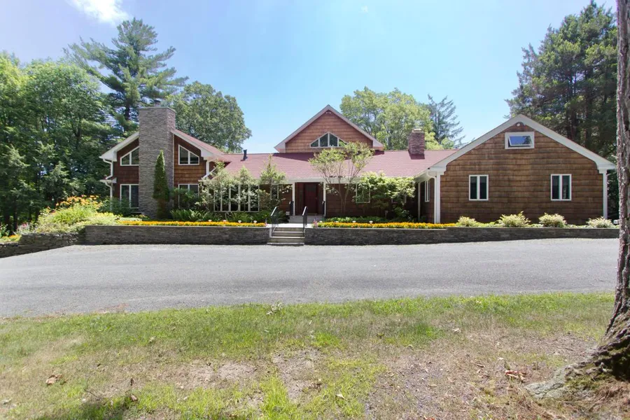 Stunning 22 Acre Estate. Incredible gardens, incredible home, incredible views! Home offers 3 bdrms including a main level master suite built around bringing the outdoors in, a LR w/ cathedral ceilings, fireplace & wet bar, modern kitchen with island, dining room, formal (2nd) living room with fireplace, full finished lower level w/ wine cellar, 2nd level private office w/ cathedral ceilings & lots of glass and more! All main rooms walkout to a beautiful stone patio that stretches the entire length of the home & overlooks the gardens & views. The grounds are fenced & are impeccably kept w/ multiple gardens and an adorable covered sitting area to enjoy an evening cocktail. Paved driveway, attached 2 car garage, sheds, whole house generator & security system. Property is in clean & green!