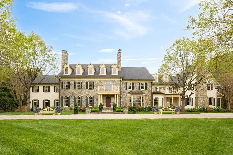 Round Hill is unquestionably one of the country’s most prestigious residential communities, its collection of estate homes set far back from the winding, estate fence lined streets. Amidst this rarified air stands a classic American fieldstone colonial prominently sited on two corner acres. Built by the legendary Ted Visnic, it is introduced via a sweeping paver driveway beyond motorized gates. Looking over a level, manicured lawn framed by immaculate and extensive hardscaping, the estate is a spitting image of the classic country home, embodying a certain familiarity and warmth. The sprawling 22,950 square foot floor plan is initially introduced with a grandiose greeting hall, whose elegant fireplace, double-height ceilings with mezzanine overlook and sturdy doric columns convey images of the triple Michelin-starred Inn at Little Washington. Any estate of this caliber ought to feature the obligatory banquet-sized formal rooms, in this case mirrored and connected via a spectacular arched transverse gallery. Said gallery terminates in the jaw-dropping two-story mahogany library. Its roaring fieldstone fireplace soars from floor to ceiling, while a fully-equipped wet bar overlooks the billiards room whose centerpiece is the Piper J-3 Cub suspended from the ceiling. Tucked off to the side is a replica of another American icon — Oval Office — serviced by twin formal powder rooms. The heart of the home’s informal area is the two-story, cathedral ceilinged, limestone floored chef’s kitchen. Furniture grade cabinets, marble countertops, a unique teak island and all top-end Viking/Sub Zero appliances are all par for the course. A cozy tea room and separate family areas complete the main level. The upper level primary suite is a residence in and of itself. Dual ensuite baths, each with new marble tilework and their own custom dressing rooms, create a peaceful, secluded oasis. Six additional bedroom suites are all sumptuously furnished with new baths, four of them boasting individual fireplaces and one featuring a unique loft space. The eighth bedroom suite located on the top level is adjacent to a large storage area, creating flexibility in the floor plan. The lower level is a true entertainer’s delight with every imaginable amenity present. From the new 22-seat home cinema with 135 inch screen to the indoor basketball court and fitness center, not a single detail has been overlooked. Rounding off the lower level are a private yoga room and three additional storage areas. Mechanical systems powering the home are all of commercial caliber, such as the 11 zone HVAC, new 50 year asphalt shingle roof, and temperature-controlled five car garage with space for lifts, EV charging station, air compressor, and separate vacuum system. As with any great estate, the grounds are every bit as extravagant as the rest of the home. The heated 40-foot lap pool with automatic cover is surrounded by meticulously landscaped grounds which form a lush, green wonderland. An English garden, rose garden, and organic garden are all interwoven with flagstone walkways, while the elegant pool house with cupola and half bath offers additional convenience. Numerous benches, hammocks, tables, and chair swings enable multiple pockets of total tranquility, all of which is illuminated after the sun sets. With every single feature contained in a gracious, tasteful package situated in a community which without a doubt ranks among the nation’s best, 11400 Highland Farm Court is arguably one of the most special homes ever made available.