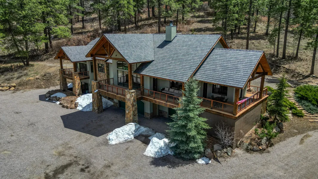 Presenting 1149 Cattle Trail Place, Pagosa Springs, CO -- Nestled on 35.54 acres bordering the National Forest and Spence Creek, this stunning home boasts panoramic views and water rights. The contemporary design features a spacious fully furnished 4,276 square feet with 4 bedrooms, 4 bathrooms, and a 3-car heated 1151 sf garage. Inside, the native rock fireplace serves as a centerpiece between the living and dining areas. The gourmet kitchen is equipped with a Wolf Range, wall oven, and granite countertops, complemented by tumbled Travertine Stone and Australian Cypress hardwood flooring. Expansive windows offer views of Square Top and Quartz Ridge, enhancing the allure of abundant wildlife. Step onto the large covered deck from the living room to savor the sights and sounds of Spence Creek. The primary bedroom on the main level includes a private deck, new Amish furniture, jetted tub, tiled shower, and spacious walk-in closet. Recent updates include new tiled flooring and a converted downstairs bonus room to a family room, adding versatility to the layout. New DaVinchi standing seam roof, new radiant heat boiler, new soaking tub in downstairs guest bath. Entire interior has been freshly painted. Spence Creek runs the length of this property, and 8 shares of irrigation water support the lush front pasture. An outdoor arena with Priefert fencing is ready for roping and riding adventures. Perfect for horse enthusiasts and outdoor lovers, this property offers a rare blend of luxury and value.
