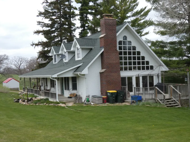 115 acres of private driftless paradise. Inviting modern home is custom built with beautiful finish and detail throughout. Open concept kitchen, dining and living room areas featuring lofted open beam ceilings, wood fireplace and lots of natural light. Bird watching is endless out the patio doors to deck. Main level master suite with walk-in closet, jetted tub overlooking back deck. 2nd bedroom, laundry and sun room also on main level. Upstairs loft with large bedroom and full bath. Large family/rec room in lower walkout with full bath and bedroom. CRP $8,005 annual income through 2023. Several outbuildings including 40'x80' newer shop with cement floor, 10' lien, water hookups. Trout fishing on adjoining property Big Green River. Bring your horses, hunting gear and any outdoor activities.