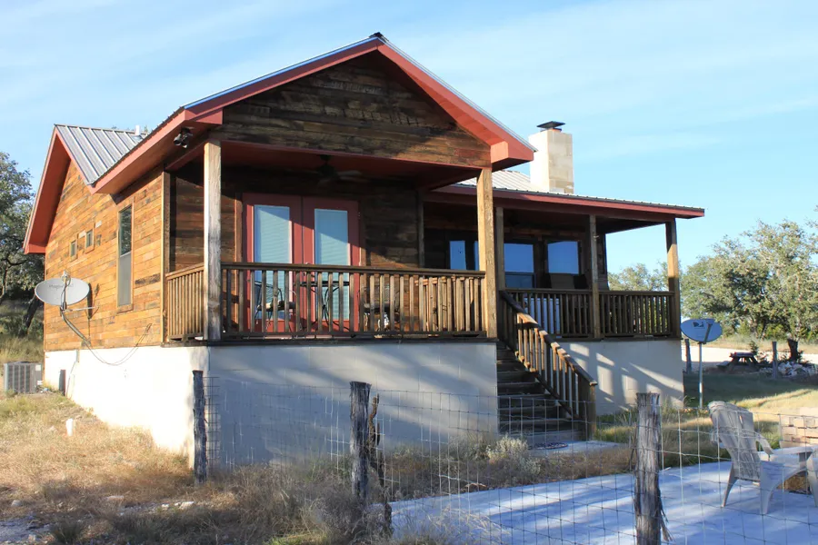 115 ACRE RANCH WITH A 2 BEDROOM 2 BATH CABIN INSIDE HIGH FENCED GAME PRESERVE. DOMINION AT SCENIC HILLS RANCH. This ranch offers excellent hunting for high genetic whitetail that were introduced to the ranch. There is also Red Stag, Axis, Fallow, Blackbuck, Aoudad, Turkeys, and Hogs. The property has two wells, one of which is exclusively for a pond. There is also a barn to store your equipment or UTV. A shooting ranging offers target practice and sighting in your rifle up to 300 yards. The custom built cabin was built with 100 year old remilled wood on the exterior and interior. It's an interior designers dream. Granite counter tops and slate showers. Masonry fireplace in the living room. Too many an ons to list. Two covered patios overlook the ranch and tremendous views of the Texas Hill Country. There is a fenced in yard for your dogs and a concrete patio with a fire pit just waiting for a warm fire. Several blinds and feeders convey with the sale. The ranch is inside 2,500 acre high fenced game ranch that is managed by a professional wildlife biologist. Paved road access makes the ranch easy to get into, and there is an all weather caliche road up to the home. The ranch is very secure and private. An automatic remote control entry system allows entry without getting out of your truck. The property in under a wildlife exception to lower your taxes. The property had extensive cedar clearing over the years and there are a number of ranch roads circulating around the property.