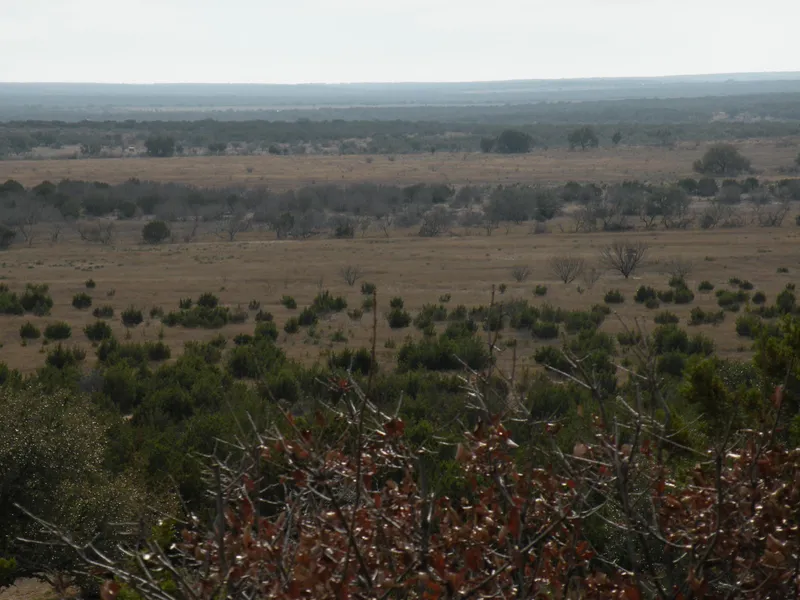 Terrain.The terrain changes from nearly level near the road, to rugged, high, and hilly towards the back. The place is well wooded, with juniper, 3 species of oaks, mesquite and other native brush.