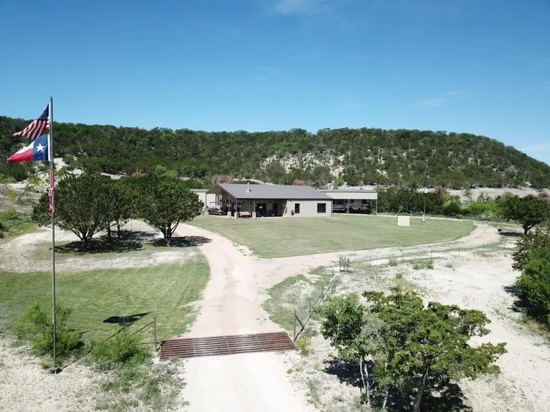 Approximately 20.25-acre homesite tract complete with a 3-bedroom, 2-bath home built in 2018, a 24x30 insulated shop building with a half-bath, a 45-foot long RV storage shed and a separate office building. Great views from the front porch of Teacup Mountain and the Blue Mountains in the distance. Open-concept floor plan with living/kitchen/dining being the central part of the home with vaulted ceilings and all bedrooms connecting to this common area. Approximately 1 acre is fences around the house and other improvements. There is a small pond at the rear of the property which attracts deer, turkey and dove throughout hte year. Great homesite with a great view of the Llano River valley to the east!