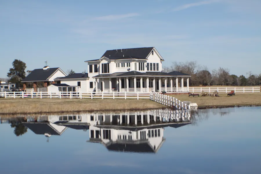 ONE OF A KIND...Waterfront Texas Plantation style home offers a taste of the South rarely found anymore. Located in Houston County on approx 116 acres, custom built with 3100 square foot. Country style gourmet kitchen with open concept to the Family room. Continue your southern hospitality from the large Living & Dining room leading outside to the additional 1100 sqft of wrap around porch overlooking the 4 AC lake. Come & enjoy this leisure ranch for horses, cows or enjoy the plentiful deer & duck hunting.