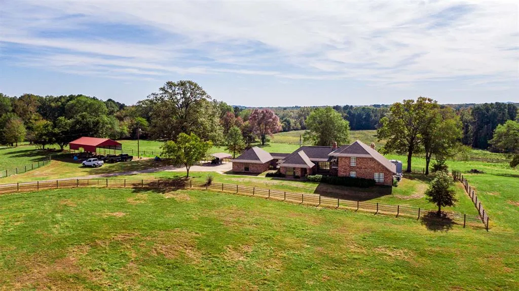 Luxury meets country living and entertaining on this pristine ~117 acre Bit 'O Heaven Ranch. A stunning custom electronic entry leads to this newly renovated home; boasting timeless finishes with stone countertops, plantation shutters, exposed brick, shiplap features, and engineered hardwood floors. An antique butcher's table centers the bright kitchen with custom cabinets, a commercial refrigerator, a Wolf cooktop, a large farmhouse apron sink, and a sizeable closet pantry. Customized for convenience with dual master bathrooms, master suite laundry, a master office/workout space and abundant storage throughout the home. This design does a great job of bringing the outside-in, with 5+ exterior doors and floor-to-ceiling windows in the kitchen, living room, master suite, study, and dining room. Fenced and cross fenced, with 2 barns, holding pens, 2 large sheds, and a carport. 2 wells and multiple ponds for water. Great hunting and fishing. Just minutes from Lone Star Lake!