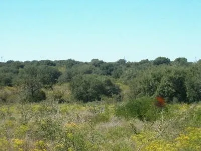 Several Buffalo Wallows can be spotted among the oaks of the wet weather creek that traverses the tract from south to north. Rolling terrain with small to large live oak trees among the high brush cover. Improvements include a good 6 wire barbed wire fence on 3 sides. A three phase electric transmission line is located on the eastern boundary and could furnish power to any future improvements. Wildlife includes deer, quail, dove, bobcats and hogs. No subdivision of property allowed.