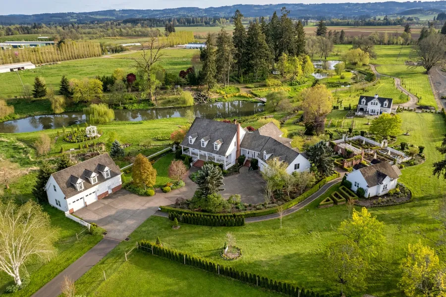 Breathtaking 67 acre Tualatin riverfront estate in the north Willamette Valley Wine Country is just minutes from town. Follow the birch lined driveway to a wonderful family home surrounded by 7 acres of the renowned Oakwood Gardens. The main home is adjacent a nature pond with a waterfall and features natural lighting flooding into the southern facing gourmet kitchen which is open to a family living room with a wood burning fireplace. The principal suite on the main floor overlooks the gardens and includes a custom glass shower, heated marble floors, a huge soaking tub, and 2 large walk-in closets. Two of the upstairs bedrooms are ensuite and other 2 bedrooms share a Jack and Jill bathroom. The rest of the home includes a wood lined library/den with fireplace, formal dining room and formal living room plus a huge recreation room for the kids. There is also a studio and retreat over the garage and a a 2-bedroom guest house at 12101 SW River road. The property is currently operated as an alpaca farm but could easily be converted into a horse property with cross fenced pastures and multiple barns. The existing pastures could also be converted into a vineyard, berry farm or orchards full of apples and hazelnuts. The property includes 6 livestock barns, 2 metal sheds and a small country store. The sale includes 2 separate tax lots and longstanding water rights, irrigation throughout, and power from the front of the property all the way to the river. Be sure to visit Alpaca Farm & Gardens online for more information. SELLER financing available for qualified buyers. Inquire for details.
