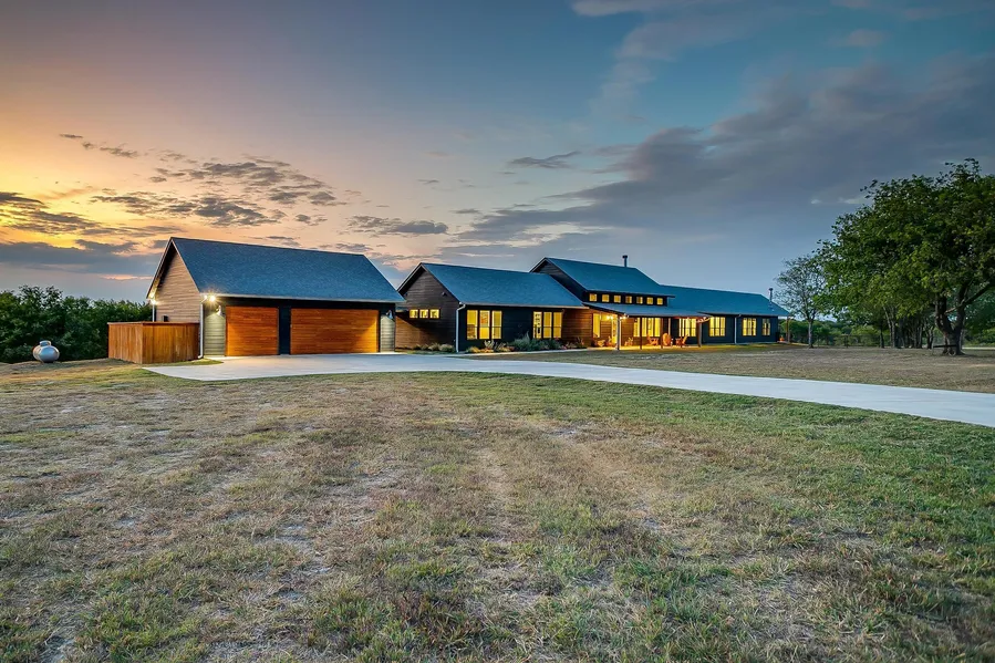 Located just 10 mins from I-35, this one-of-a-kind modern farmhouse situated on 9 scenic acres offers a private, secluded feel. Built in '19, this home was thoughtfully designed w a functional, open floorplan, incredible natural light & unique yet timeless finishes. Stepping through the front doors, the 18' wood vaulted ceilings, spiral ducting & massive windows in the great room will take your breath away. The kitchen includes honed granite countertops, custom cabinets, gas cooktop, farmhouse sink, double convection oven, built-in fridge, walk-in pantry & eat-in island. Primary bedrm includes fireplace, dual sinks, clawfoot tub, WI shower, massive closet & covered patio w vaulted ceilings. 2 beds share Jack&Jill bath. 4th bed w en suite bath. Large gameroom, designated office, workout room w french doors to over 2200+ SF feet of covered porches! Located in sought after Northwest ISD & 15 min from Liberty Christian. Functional 'cowboy pool', chicken coop, ag-exempt, seasonal creek.