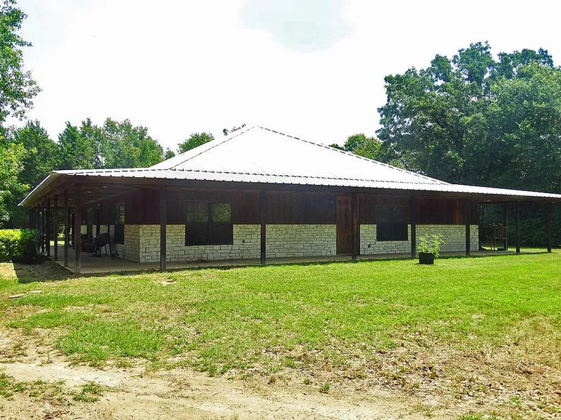 This large custom built home sits on 52 acres with a 2 acre lake. Rustic with stone and cedar siding, wrap around porches and a metal roof. Open concept floor plan with raised ceilings, oversized kitchen with custom cabinets and a walk-in pantry, formal dining, large utility with built-ins, wbfp, hardwood and slate floors, walk-in closets and a handicap accessible throughout.
