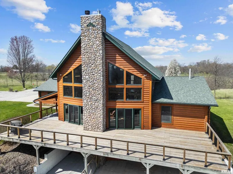 This is a one-of-a-kind custom log-home built with real 8 White Pine D Logs, on a unique one-of-a-kind 12+ acre lot. Four bedrooms, 4 bathrooms, open concept home with plenty of natural light, 24' ceilings and two fireplaces. The primary loft bedroom has a large walk-in closet, jacuzzi tub and dual-vanity sinks, as well as a private 14'x7' deck. The main floor has two bedrooms, laundry, kitchen, a deck off the kitchen & a wrap around deck off the living room and side of the home. The main-floor fireplace is wood burning with gas-ignition. The home features an ice block foundation and has fiber cable trenched into the home. Exterior has been faithfully recoated with polyurethane every two years. The basement has a built in bar & gas fireplace as well as an additional bedroom (currently used as a gym). The oversized 3 car garage is a great place for toys, equipment & vehicles. There is an additional 11'x8' shed by the house. There is a 3 horse stall with power run to to it. The 1 1/2 acre pond is 23' feet deep at its deepest and has bass, crappie & blue gill, as well as a goose family that nests in the middle each year! Additional wood shed & storage. Roof replaced in 2017, furnace replaced in 2023.