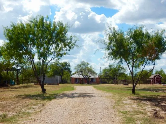 1BD/1BTH, 780 sq. ft., cabin on 45 acres with CR 7711 road frontage located just a few miles from the Wal Mart in Devine. This property features 2 access points, 2 water meters and water well. Improvements include a barn with roll-up bay doors as well as a walk-in door, a pole barn, a set of pens and pipe fencing around the yard. Property is in pasture with some regrowth mesquite and some brush with a tank that sits west of the home. Another 48 acre adjoining tract is available.