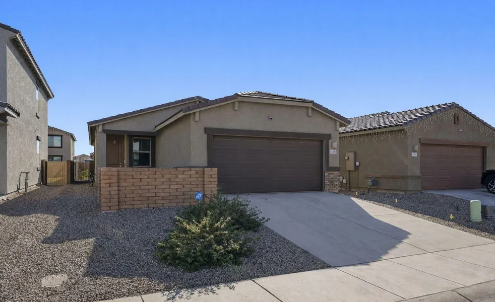 Welcome to this beautifully maintained home of thoughtfully designed living space in one of Marana's most desirable neighborhoods. Featuring a split floor pan and a bright open-concept layout, perfect for both everyday living and entertaining. Inside, you'll find wood-look tile flooring throughout the main living areas, adding warmth and style along with a seamless flow between the kitchen, dining, and living spaces. Step outside to enjoy the beautifully landscaped yard, designed for low-maintenance enjoyment and outdoor relaxation. The garage features a coated floor, offering a clean, polished look, while a newly installed water softener adds comfort and convenience to daily living. With its modern finishes, functional layout, and prime location, this home is truly move-in ready.