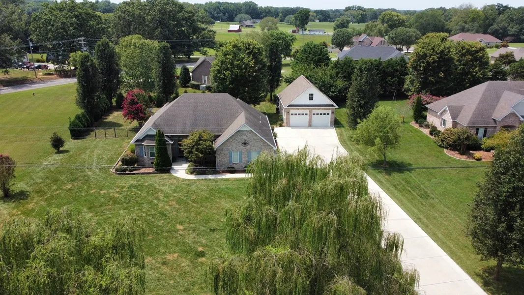 This house has so many updates, New sunroom, driveway widened 4 ft wider, Curb on both sides for water diversion, crawl space incapsulated with dehumidifier with thermostat inside house to control, 2 exit points under house, access door in main closet to craw space. upgrade aluminum fence, 3 rain barrels attached to detached for 50 gal. Over detached garage is 1/2 finished. New windows in most of the home, new duct system. HVAC serviced 2 times a year. Close to Tims Ford Lake, 1 mile to the boat ramp. Winchester Square and Wal Mart 2 miles away. Fireplace with gas logs.
