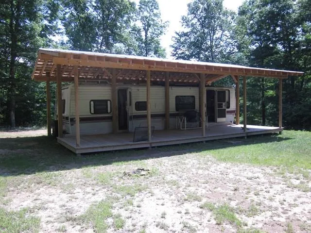 Bring your horses to this 4.6 acres that borders the Jefferson National Forest! This property is well-suited for recreation with the 35' camper (with shelter and full-length front porch!) and the small creek that borders one side. Mostly wooded with some clearing, you will find privacy with enough room to set up a small area for horses. There is a 1000 gallon spring-fed cistern down at the creek with a deep well pump to bring water up to the camper, and a 1000 gallon septic tank. Everything is ready and waiting for it's new owner, so be sure to see it before it's gone!