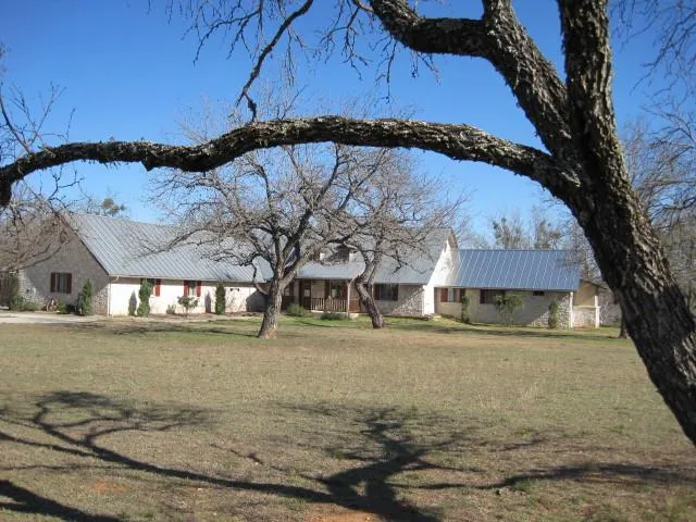 This classic Texas Hill Country Riverfront property exemplifies the much sought after style and country luxury on 12 acres that is desired by those buyer's wanting to escape the city life permanently or for the weekend. Featuring over 1200 ft. of Pedernales River frontage, surrounded by a classic cedar split rail fence, the entire 12+ acres has been carefully maintained in a park like manner suitable for family recreation, relaxation or entertainment. A 1 story, 2,750 sq. ft. (per Gillespie CAD), 3/3 ranch style home of limestone and standing seam metal roof, has been built on a hillside overlooking the beautiful, clear waters of the Pedernales. The home features a beautiful knotty pine covered, vaulted ceiling in the open living room, double-paned windows, sprinkler system and automatic entrance gate. Among the many other improvements include an attached 988 sq. ft. (per Gillespie CAD), 3 bay garage that has been finished out in attractive tile flooring and a central air and heating system, several private tree lined patios and walkways and a covered Ramada with a large fireplace and barbeque prep area. There is also an unusual footbridge crossing a native tree covered draw, leading to a 1,020 sq. ft. (per Gillespie CAD), 2 story, 1/1 guesthouse which resembles a 19th century Texas "Sunday House". There are 2 additional equipment storage buildings and several pieces of personal property and maintenance equipment to be included in the sale.