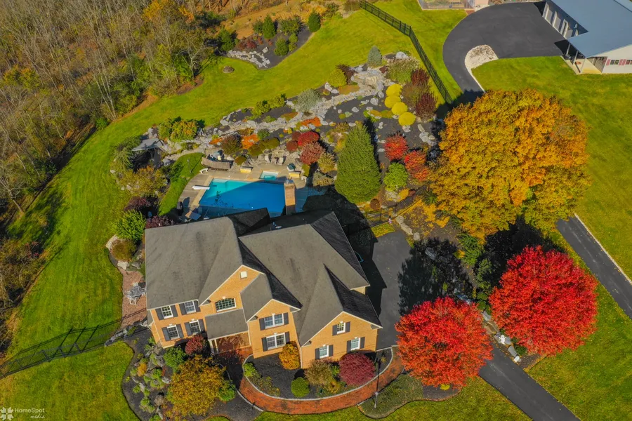 Exquisite mountain views, classic design, quality construction & energy efficiency highlight this 12-acre fine luxury estate. Absolutely stunning home provides unparalleled features which include spectacular landscaped waterfalls, 1930s Allentown City street light, one-of-a-kind 1880s Philadelphia front entrance door, Hesss chandelier hanging from a 2-story foyer. A master suite fit for a queen provides tray ceiling, sitting room, double doors to marble countered bath with jetted tub & heated tile floor. Kitchen boasts 42 raised panel cabinets, oversize menu desk & 5 burner gas stove top. Extraordinary 2000 sf finished walk-out lower level includes family room, gym, game room, Travertine bathroom & granite wet bar with 4 system Tru-Brew Beer Meister. Heated 40x30 in-ground Gunite pool by Anthony & Sylvan has separate spa & deck cantered over Koi pond. Attached 3-car garage & detached garages with 8 bays & workshop under two pole buildings.