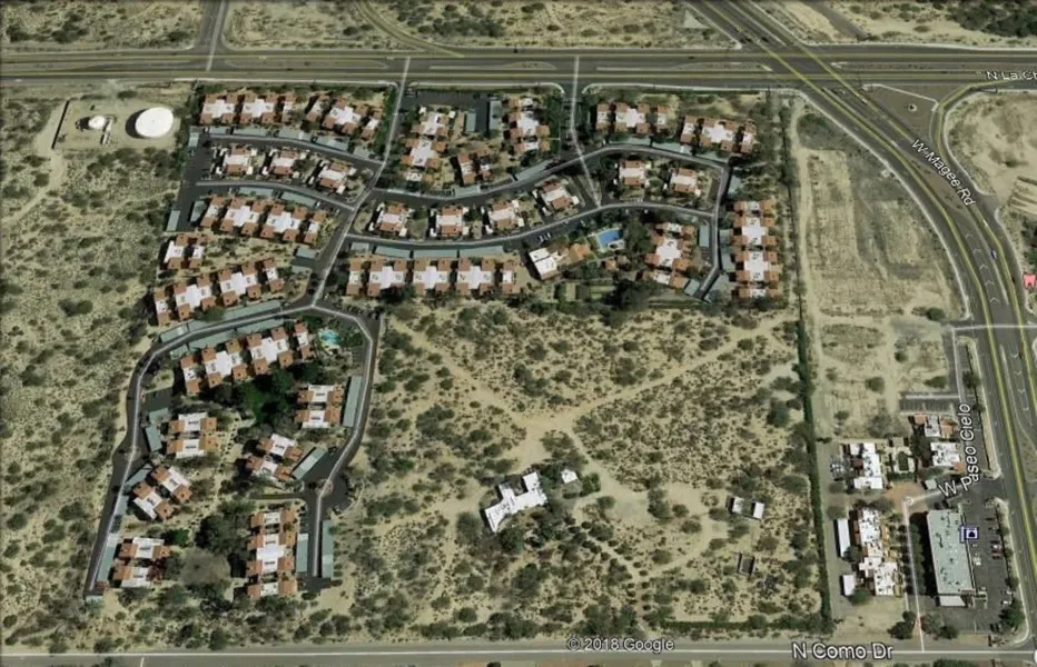 ENDLESS POSSIBILITIES - CASA VIEJA - Timeless 1941 adobe classic designed by renowned architect Frederick Eastman on 12+ subdividable acres adjacent to Omni Tucson National Golf Resort, home of the annual Legends Championship Golf Tournament. Gated entry, the main estate features a romantic Old Mexico/Hacienda style U-shaped courtyard entry, ultimate great room with high wood beamed ceilings/color concrete floors, open spacious floor plan and exposed burnt adobe interior walls. Andrew Weil's Center for Integrative Medicine utilized this property as his conference center and main office during the early 2000's. The 2003 Adobe Casitas equal one residence - #1 with living room/kitchen, #2 with bedroom/bathroom. The 12+ acre parcel is gentle and lush with amazing Catalina Mountain views.