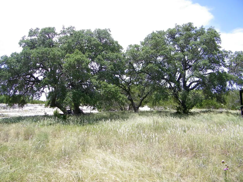 Beautiful home site, big oak trees. Mix of wooded and cleared land. Restricted subdivision. Kerr County, Harper Schools. Water well. Metal shed. Convenient interstate access.