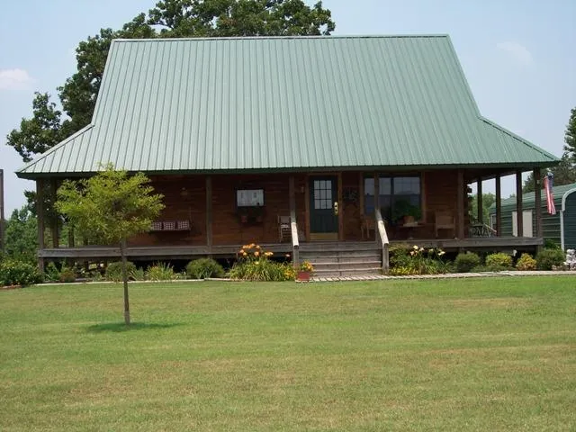 Gorgeous cabin. Great retreat. Well maintained property. Open living. Wrap-a-round porch. Separate deck overlooking pond pier. 2nd bedroom is upstairs (pull down ladder in hall) Floors are created of 5 different types of wood. Ceilings and walls are yellow pine. 8" solid Arkansas Cedar Logs. Deep well approx 582'. Garage/electric & barn has electric & propane. Storage building has 220. Front pond stocked with channel catfish, brim, popeye minnows. Back pond-Bass. Central unit 2 1/2 ton. Water heater is a whirlpool 50 gallon energy smart. JS9989806