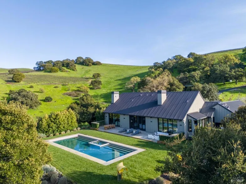 Serenely situated in the rolling hills of Napa, Oak Ranch sits on 12 acres laden with beautiful native oaks and has views from every vantage point over the positively breathtaking land and your own vineyard. The Hurley Hafen designed, custom single-level home, is a perfect antidote for those seeking privacy and calm. A seamless blend of indoor-outdoor spaces and natural light throughout both residences. The Chef's kitchen with great natural light, top of the line appliances and custom Imported Italian cabinetry abuts the secondary full kitchen, wine cellar, BBQ deck and a family room with a large banquette overlooking the pool. The primary suite has a Prada inspired closet and a private sun deck with outdoor shower and office off the spa like bathroom. The large media room, sun room, game room and 2 additional ensuite bedrooms complete this home. As you cross over the footbridge into th...