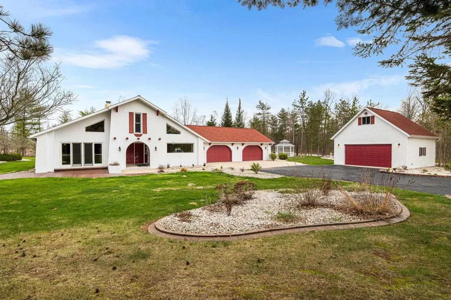 READY TO BE WOWED? Meet this UNIQUELY GRAND Spanish-style home that offers COUNTRY SERENITY on 12 WOODED ACRES w/ custom landscaping! The XL living room has a FP & patio access, while the unique kitchen is loaded with cabinets & a cool built-in charcoal grill - both spaces feature SOARING VAULTED CEILINGS w/ TONS of NATURAL LIGHT! Discover your 2 full baths and first-floor laundry. Also find 2 XL bedrooms plus a GRAND PRIMARY SUITE w/ WIC & AMAZING EN-SUITE boasting whirlpool tub and XL dual shower. HEATED TILE FLOORS throughout! UPSTAIRS has an extra bedroom, half bath, office space, & storage! MASSIVE 4-car attached garage w/ workspaces plus a heated 2-car garage w/ CABIN-STYLE BONUS room above! PRE-INSPECTED & just appraised for $650,000! Just minutes from Berry, Shawano & Legend LAKES!