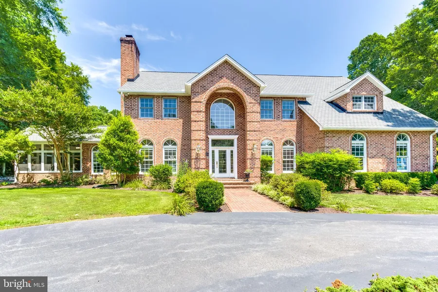 LESS Than an Hour from Washington DC ~ Your own PERSONAL PARADISE! Look no further ~ this outstanding, ALL BRICK quality built home has it all! From the moment you first drive up, you will feel welcomed to this beautiful home. The arched brick entry opens to a grand 2-story foyer that leads you into the open floor plan with 10~ ceilings and a beautiful curved staircase. As an entertainer~s delight, there~s a spacious office with built in shelves and a wet bar and a large formal living room with granite trimmed fireplace. Continuing on, you will find a solarium and a brick-floored enclosed porch that leads out to a beautiful patio and peaceful Koi pond with a waterfall feature ~ so relaxing! You~ll love preparing meals in the huge gourmet kitchen with loads of counterspace and a huge island. There~s a prep sink and a pass through to the breakfast room for easy access to both the family room and the huge sunroom with cathedral ceilings and beautiful windows overlooking the rear yard, sport/tennis court, inground pool and the large maintenance free deck. On the upper level, you will find a wonderful master suite with cathedral ceilings, multiple closets, two separate office/dens ~ one with wet bar ~ a triple room walk-in closet, a separate laundry room with front loads, and a wonderful en-suite master bath spa ~ with double sized multi-head glass walk in shower, and an oversized jetted tub. There are three other generously sized bedrooms on the upper level as well and another full bathroom. The basement level offers 1 more bedroom, game room, workout room, great room, full bathroom, lots of closet storage and separate second kitchen and patio. There is wainscoting in the living room and dining room and crown molding, ceramic tile, and hardwood flooring through much of the home. The d~cor is neutral and updated with plenty of natural lighting. Rooms are generously sized. There is also a huge 3 bay detached garage with 14~ ceilings and a full apartment over the garage with a kitchen, huge bedroom and sitting area and 2 full bathrooms. The garage is also brick and block construction and has a full basement/concrete room under it. There are circular driveways around both the house and the garage and there is even a 60-gallon air compressor with the garage! All this on twelve and a third acres, less than an hour from Washington DC and the National Harbor. Come take a look at all it has to offer!