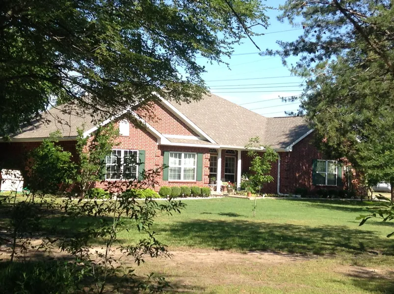 Beautifully landscaped custom home on 12.374 acres near Lake Bonham and the soon to be built 16K+ acre Lower Bois d'Arc Reservoir. Very desirable rural area yet located on 45 mins. from the Northern suburbs of Dallas. Spacious 3 bedroom, 2.1 bath, split bedroom plan with crown molding, high ceilings and lots of windows for viewing the lush landscaping and woods. Large family room, 2nd living area, formal dining, garden kitchen with another large dining area, corian countertops and double ovens. Master bedroom has extra reading nook/computer space. Guest bedrooms on opposite side of home are separated by a Jack & Jill bath. Nice size pond, two smaller ponds, covered patio, double garage and extra covered parking for 6 additional vehicles, 24X30 workshop and trees galore.