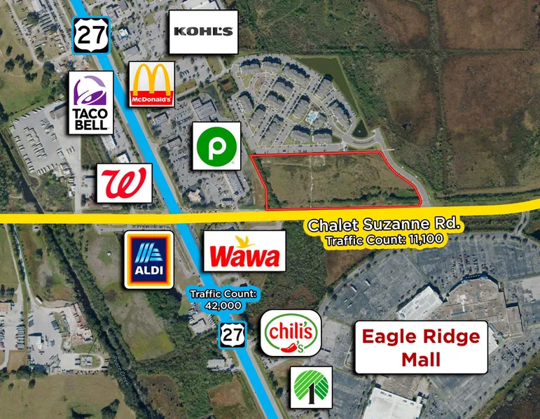 Exciting opportunity for a retail or hospitality project. Lighted corner at new road that is under construction. Property is approximately 12.4 acres and is zoned C-3 Highway Commercial. Located along US Hwy 27 corridor in an area of booming commercial and residential development. This property offers an excellent opportunity for retail, multifamily, and hotel development. It is located directly adjacent to Publix, Home Depot, Kohl's, and many other stores and restaurants. Additionally, it is directly across the street from the 600,000 square foot Eagle Ridge Mall. There is a proposed traffic light and new road which will give this site a lighted hard commercial corner. Also adjacent to this site is a new Class A 335 unit apartment complex. The southern portion of Star Lake Blvd. will be constructed for access to the apartments and will terminate and the new traffic light to be installed.