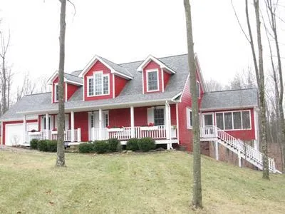 All you need is the key. Completely furnished, immaculate four bedroom, two-and-a-half bath home. Even the decor stays! Perfect setting with 12.4 acres, wooded with trails, open with a few shade trees around the house and pond. Pond has a sandy beach, dock, shelter area. Home is light & bright with many windows and doors and white painted horizontal wood paneled walls. Distressed hickory floors. Great room has a stone wood burning fireplace, dining area and doors leading to big back deck and screened porch. Kitchen has Bremtown cabinetry and plenty of it. Master bedroom with walkin closet and full bath. Half bath and entry. Hallway leads to 12x11 laundry/mudroom and 2-car attached garage. Upstairs is a middle room for office/sitting room/play room separating 2 large bedrooms. Downstairs has a huge area that could be finished as family/rec room plus additional bedroom. 24x24 detached barn/garage. Home and property are absolutely delightful.