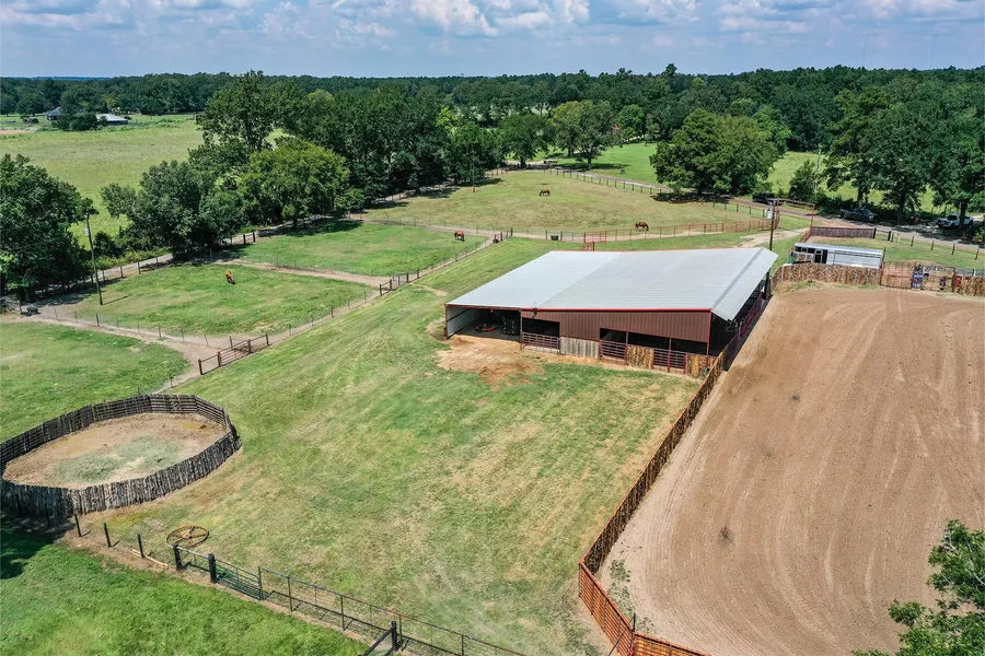 One-of-a-kind fully equipped equine facility on 12.5 acres. This property has everything you need for a full capacity operation. The 6,800sf metal barn features 8 stalls with room for more, a covered colt starting pen, full bath with shower, wash rack with water heater, insulated tack room and office, covered parking for tractors and equipment, concrete hay and feed storage, and more. The arena is 115x220 and boasts 6ft cedar slats for a modern touch and privacy. 4 rough stock chutes, two roping boxes, return alley, and a Priefert steer chute set the tone for any event or practice. The property has 6 pastures, trailer parking, a 3 car covered carport, and trainer's apartment for full time living or weekend stays. The apartment is equipped with a full sized kitchen, living area, full bath with laundry hook ups, one bedroom with walk-in closet, and lots of storage. The possibilities here are endless, and it is in close proximity to major interstates and multiple arenas in the area.