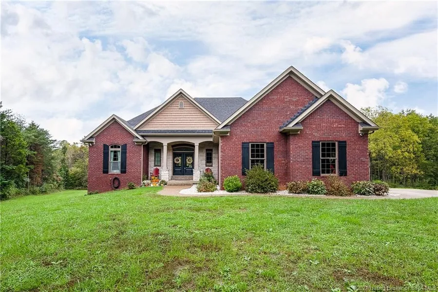 THIS IS IT!!! AWARD WINNING FC SCHOOLS! CUSTOM BUILT, Better than NEW! One Owner! Over 12 GORGEOUS WOODED Secluded Acres in FLOYD COUNTY. (5 Parcels sold together) Tucked away off a PRIVATE Drive, This SPECTACULAR HOME and Stunning Setting AWAITS! QUALITY, Custom Built by Ty Romeo, Potential for Family Homestead w/2 Acres out front ready to build on! 4 Beds/3 Baths, WALKOUT RANCH! You?ll LOVE the Beautiful Brick and Real Limestone EXTERIOR, COVERED Front Porch, Custom SOLID HICKORY Wood Floors (Koetter Woodworking), OPEN Floor-plan, Stone Gas FP, Lrg Open Vaulted Liv Rm, Lrg Custom GRANITE ISLAND Bar, Custom Solid Maple Amish Cabs, STAINLESS, Walk-in PANTRY, Lrg Eat-in Area, Spit Plan, Lrg Master w/Tray, CUSTOM Walk-in Tile Shower, GRANITE, AMAZING WIC!!!! Beds 2/3 NICE SIZE, w/ Custom WICs w/Storage. High-end Finishes Throughout, Full Hall Bath w/Granite, Lower Level WALK-OUT Boasts 9ft Ceilings, NATURAL LIGHT, Recessed Lighting, Wired for Projector, OPEN REC Space and Game Area, Wet-Bar, UTILITY Garage, 4th Bed w/egress, 3rd Full Bath, LOTS of Storage, COVERED DECK overlooking MATURE TREES, Fire-pit and Wildlife. OVERSIZED Garage, Energy Efficient, Andersen Windows and MORE! Incredibly PRIVATE, Opportunity for Pole-barn or pool! Don?t miss this ONE! Sq ft & rm sz approx.