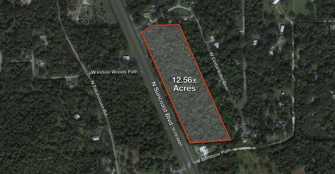 PROPERTY DESCRIPTION - The opportunity is to purchase 12.56 acres on N Suncoast Blvd (US Hwy 98) in Crystal River, FL within Citrus County. The total acreage is comprised of four contiguous parcels all fronting N Suncoast Blvd giving great visibility to 16,100 cars per day.