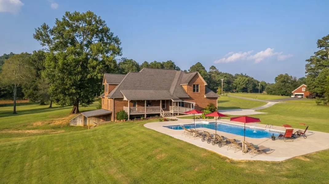 This 4-sided brick home with 6 bedrooms and 3.5 bathrooms located on 12+ acres with ~1,000 feet along Raccoon Creek is an absolute must-see property! Located just minutes from Cloudland & Mentone, 30 minutes from Rome, 1 hour from Chattanooga, 1.5 hours from Atlanta and 2 hours from Birmingham. Master on main with great room and kitchen combined in open floor plan that opens to covered back deck and a large in-ground saltwater pool. Also on main: additional 1.5 bathrooms, 1 bedroom, dining room, study and 2-car garage. Double vanity, jet tub and large shower with 6 shower heads in master bathroom. Upstairs is a dream layout for the family with 4 bedrooms, a large living area and a bathroom. Multiple large storage closets upstairs. Partially finished basement with 1-car garage and gym.