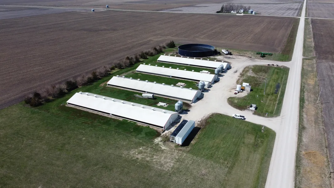 Check out this wean to finish hog sites located in Pocahontas County, Iowa. Total pig space is 7,700 head in two locations located close to Palmer and Pocahontas, Iowa. Home site sits on 4.93 acres with 4,400 pig spaces. With 4- 49'x201' natural chimney vented barns. The south site sits on 7.65 acres with 3,300 pig spaces. With 3- 50'x200' natural chimney barns.