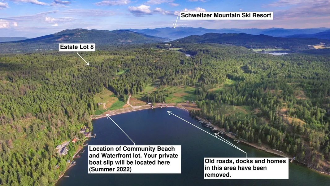 Here's your chance to own 12.62 acres and be part of this new waterfront community in Camp Bay, Idaho, on famed Lake Pend Oreille. This waterfront development offers private paved roads, trails and open space throughout the community connecting to adjacent public lands, high speed fiber optic internet, community lakefront recreational area as well as water and sewer/septic included with each lot. Only one of four remaining estate parcels offering amazing views, increased privacy and an incomparable setting. Just 30 minutes from downtown Sandpoint the home of Schweitzer Mountain Ski Resort! See attached sheets for lot availability, pricing and community recreational amenities. The conceptual master plan is for illustrative purposes only.