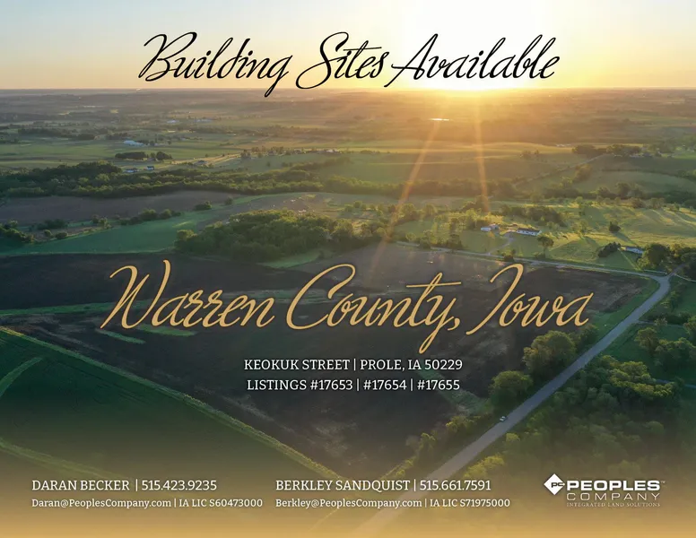 Peoples Company is pleased to offer this phenomenal 12.63-acre m/l building site located on Keokuk Street, just southeast of Martensdale, Iowa in rural Warren County. This executive building site is located less than a half mile off paved County Highway R45 and offers a new owner the opportunity to build their dream home with no covenants while still having the convenience of a short commute to the Des Moines Metro area.