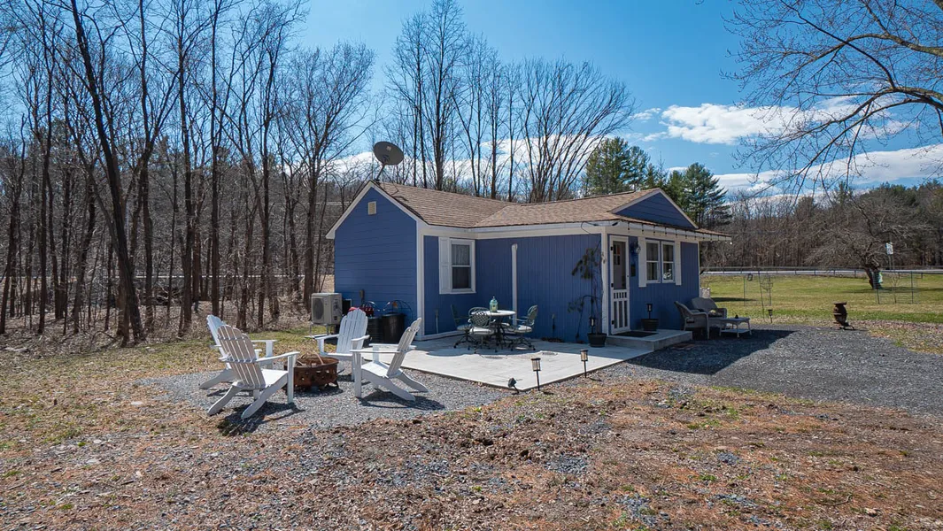 Beautifully renovated 3-bedroom log cabin plus an adorable 2-bedroom guest cottage (active Airbnb rental) and a 24x24 baby-barn with electric sited on over 12 lovely acres along Thorp Creek- you even have your own swimming hole! Cozy and rustic with a warm heart, this charming cabin features a gigantic bluestone fireplace, an open-concept cook's kitchen with granite counters, oversized sink, self-closing KraftMaid cabinetry, high end Samsung appliances and a spacious dining room. Nice hardwood floors throughout, tiled surround baths and central air conditioning for those warm summer days. Close to all the attractions that the Great Northern Catskill mountains have to offer make this an easy rental- Durham hamlet famous Festivals, Zoom Flume Water Park, the best hiking trails and world-class skiing and mountain biking are a very short drive up the mountain. Live in the log home while rent...