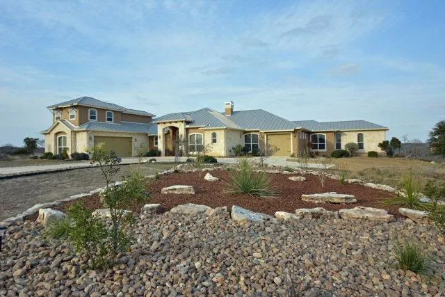 Enjoy spectacular views from this custom built Hill Country and Tuscan inspired oasis on 12.7 ag-exempt acres nestled on a tree studded cul-de-sac street just minutes from historic Fredericksburg, Comfort and IH-10. Luxurious all single story home (except for media/bonus on 2nd floor) boasts soaring ceilings, stained concrete floors, gourmet double island kitchen, private master suite, covered... porches and a luxurious pool with hot tub. Guests will feel right at home in the elegant attached guest house with living area, kitchen, 2 bedrooms, 2 bathrooms and its own private deck, entry and separated garage. State of the art media throughout the home. Great attention to detail with exceptional quality. This is truly a masterpiece flooplan with beautiful proportions perfect for entertaining.