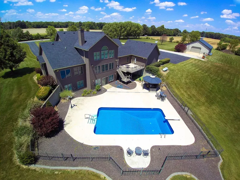 This incredible 12 acre estate has it all! Located only a few miles away from Carlinville Illinois. This 4 bedroom and 3.5 bathroom 1.5 story house with a full basement has upgrades throughout the entire home. Three years ago the pool had a new liner, new heater, and was converted to salt water. The house is heated and cooled by Geothermal and all the lighting has been converted to LED in the house! The property also features a 42x45 foot Morton building and a pond!