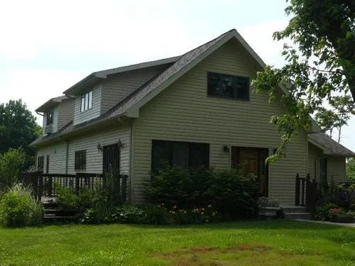 Breathtaking setting in this fully reconstructed farmhouse with 12 acres m/l. In 2003-2004 this home was extensively renovated. The home has 3 bedroom, 3 baths, a new kitchen and summer kitchen in the walkout basement. Family room, formal dining room and lots of storage compliment the home. Landscaping includes many fruit trees and decorative shrubs and trees