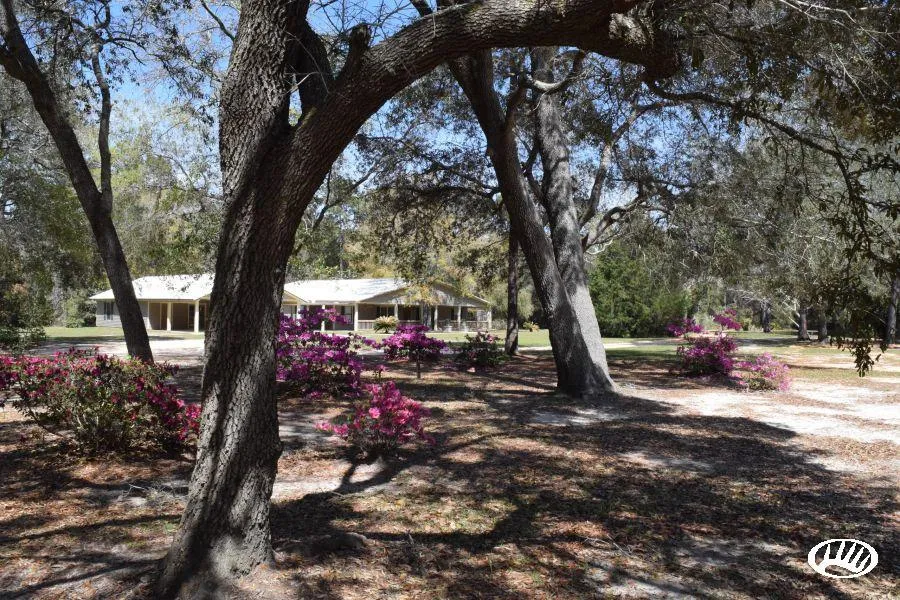 A Southern Retreat. Located in the southernmost part of Coastal Alabama lies this amazing retreat property. With paved road access from two county roads, this private acreage provides home to a single resident who has crafted a masterpiece of infrastructure and assets. Starting with the beautiful country style main home that was built in 2002 and is just over 3400 square foot. The main home offers a large open floor plan with a spacious kitchen, living room and dining areas. It offers three large bedrooms and two baths with laundry, along with a nice country style porch area. The ceilings inside the main home are white pine tongue and groove and are fourteen foot high over the living room area. Attached to the main home is a similar style carport with spacious parking for two large vehicles. Enclosed bonus space is located under the carport with a large open area with one bathroom and on...